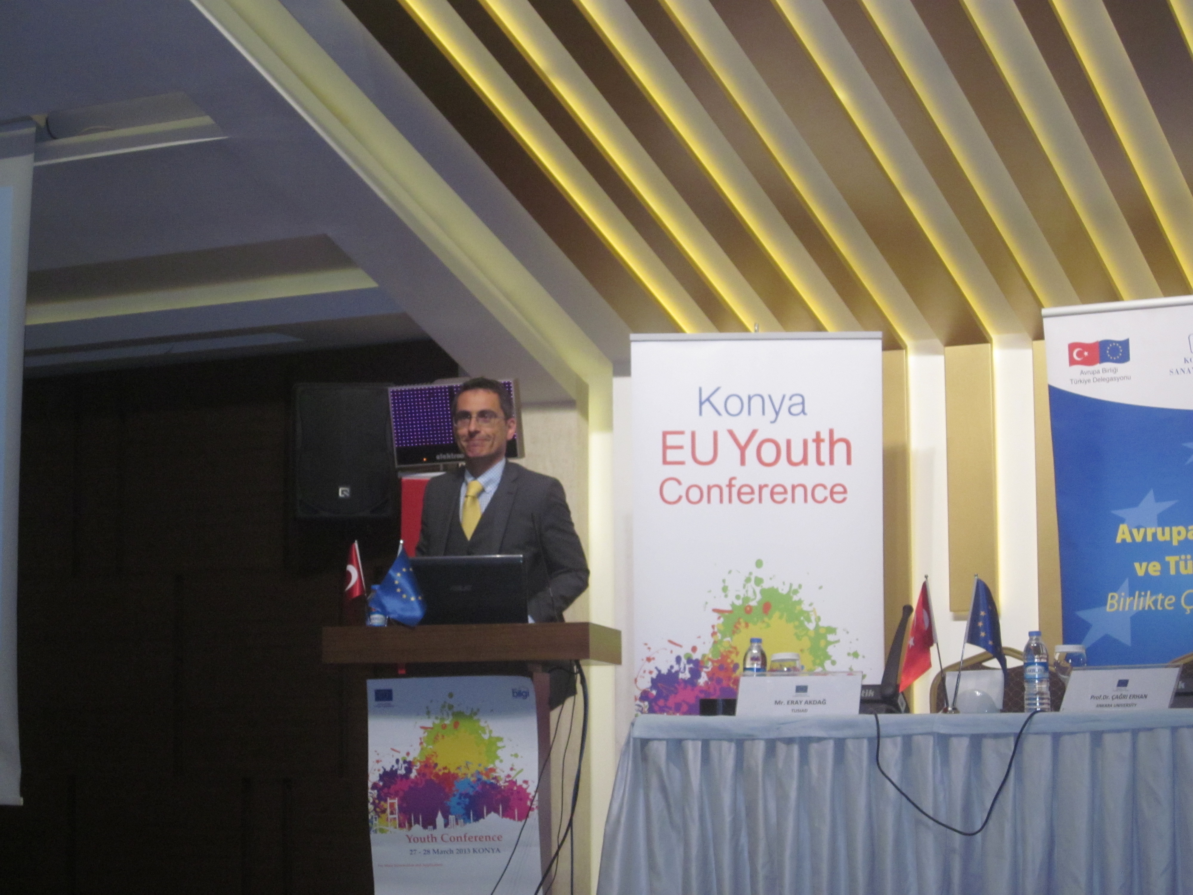27-28 Mart 2013 tarihlerinde Ankara, Kayseri, Antalya, Eskişehir, Konya, Adana ve Mersin illerindeki üniversitelerden AB Gençlik Konferansı’na katılan üniversite öğrencileri sosyal ve kültürel programın ardından Avrupa Birliği ve Türkiye ilişkileri tartıştılar. ATAUM Müdürü Prof.Dr. Çağrı ERHAN ve TÜSİAD Daimi Ankara Temsilcisi Eray AKDAĞ’ın sunumlarının ardından, “Avrupa’nın geleceğini şekillendirmede Türkiye’nin rolü, AB’nin Türkiye’ye neler getireceği, Türkiye için AB’nin önemi” konuları çalışma gruplarında tartışmaya açılmıştır.