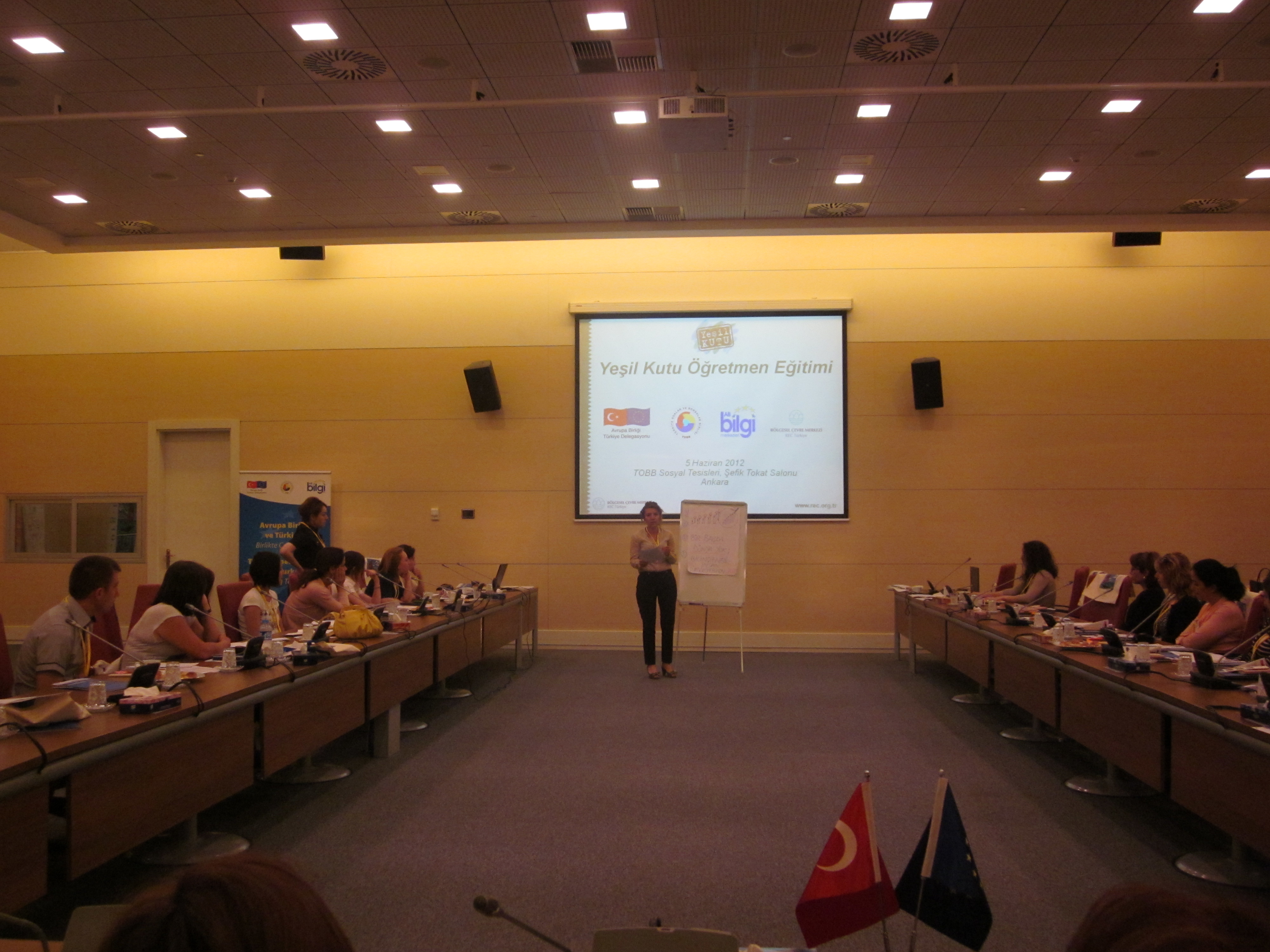 Ankara AB Bilgi Merkezi ve Bölgesel Çevre Merkezi işbirliğinde 5 Haziran Çevre Günü’nde Yeşil Kutu Öğretmen Eğitimi gerçekleştirilmiştir. Eğitim, REC Türkiye Ofisi Yeşil Kutu Proje Koordinatörü Sayın Pınar AKPINAR tarafından Ankara’nın çeşitli ilköğretim okullarında görevli öğretmenlere verilmiştir. Eğitimde, Yeşil Kutu Eğitim Seti tanıtılmış, Sürdürülebilir Kalkınma ve bu amaçla eğitimden faydalanılması konuları işlenmiş; eğitim sonunda katılımcılara Yeşil Kutu Eğitim Seti’ni internet üzerinden kullanma şifreleri ve katılım sertifikaları verilmiştir.