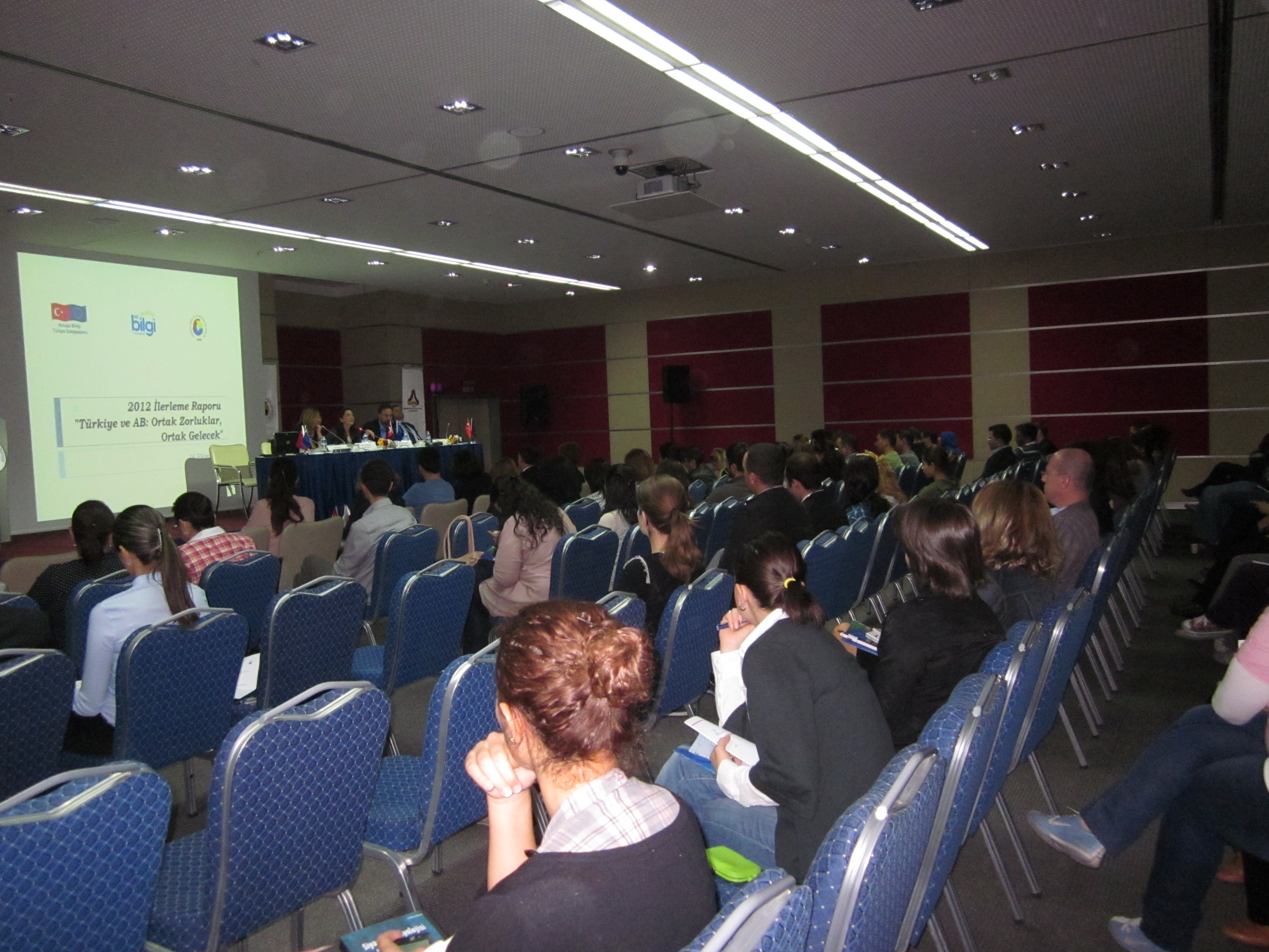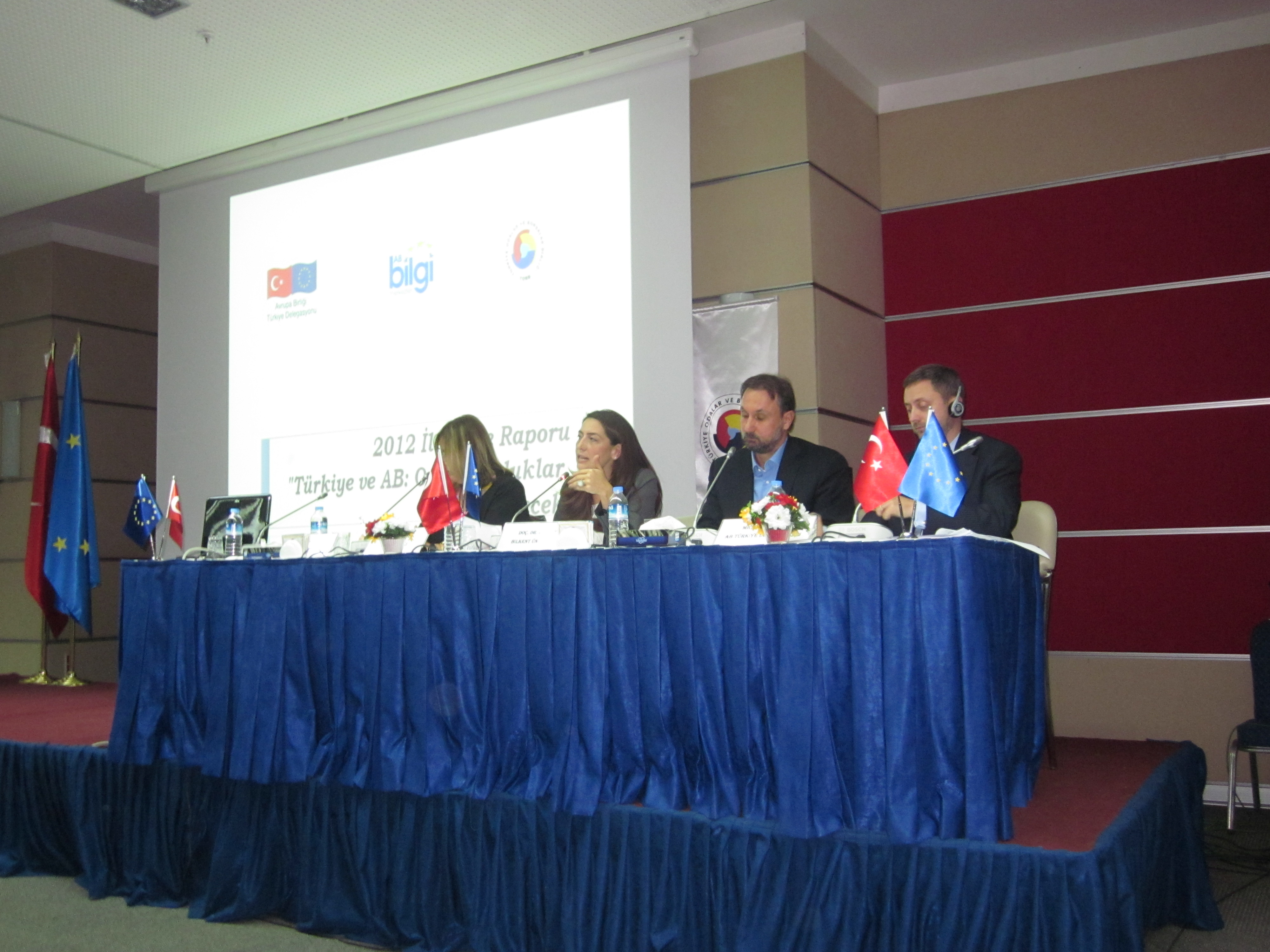 Açılış konuşmasını TOBB AB Dairesi Başkanı Sn. Mustafa BAYBURTLU’nun yaptığı panel Bilkent Üniversitesi Uluslararası İlişkiler Bölümü akademisyenlerinden Doç. Dr. Ali TEKİN tarafından yönetildi. Konuşmacılarının Sn. Michael MILLER (AB Türkiye Delegasyonu Birinci Müsteşarı, Siyasi İşler, Ortak Dış Politika ve Güvenlik Politikası, Basın ve Enformasyon Bölümü Başkanı), Sn. Lale KEMAL (Taraf Gazetesi) ve Sn. Seval İSKENDER (AB Bakanlığı Katılım Politikası Başkanı) olduğu panelde 10 Ekim 2012 tarihinde yayınlanan Türkiye İlerleme Raporu değerlendirildi ve dinleyicilerin soruları alındı. Müzakerelerin başladığı tarihten bu yana Türkiye’nin reform hızı, bu reformları uygulama ve AB Müktesebatına uyum kapasitesi farklı açılardan tartışıldı.