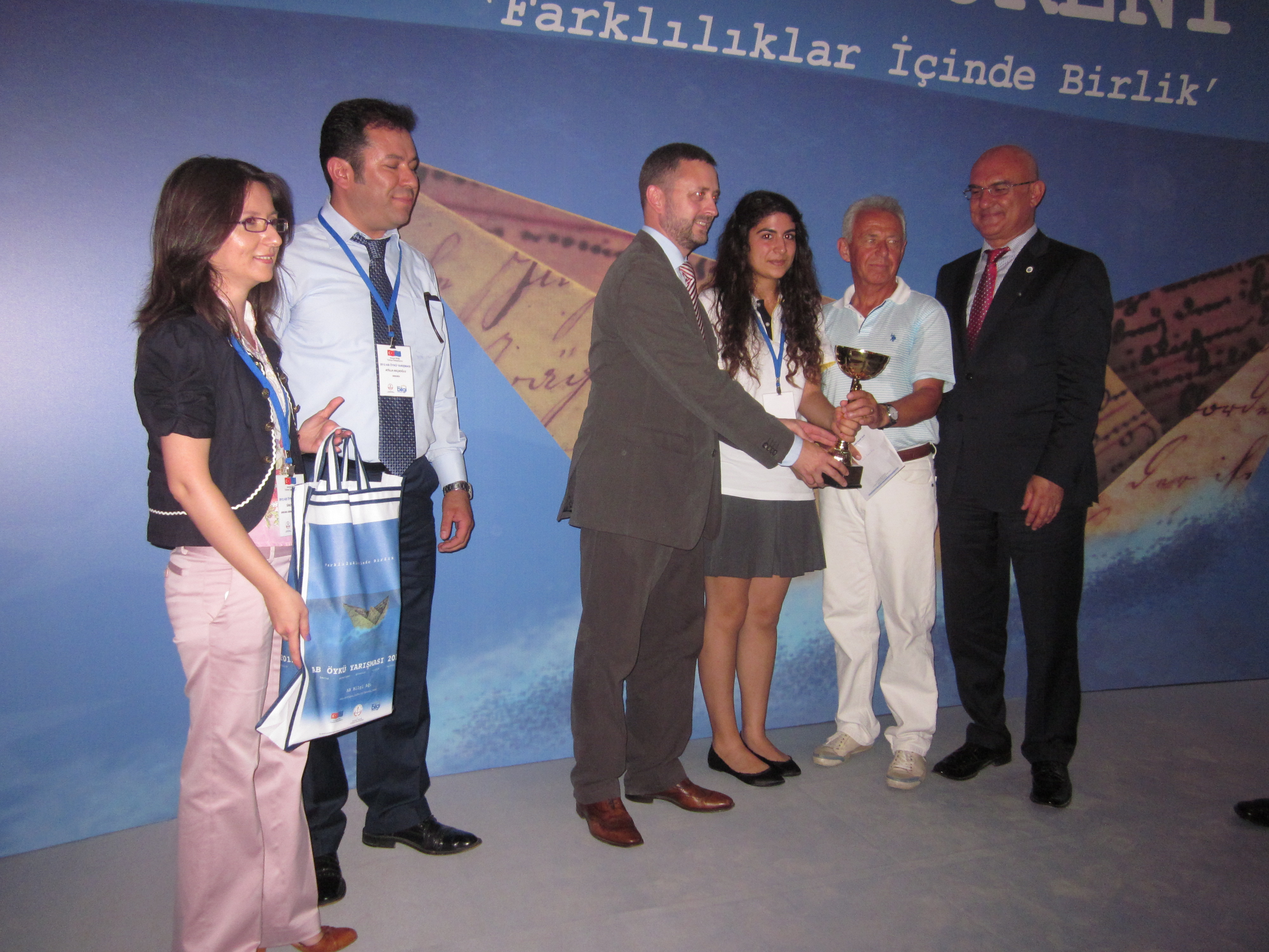 Avrupa Birliği Türkiye Delegasyonu ve Milli Eğitim Bakanlığı işbirliğinde, AB Bilgi Merkezleri koordinasyonunda düzenlenen 2013 AB Öykü Yarışması’nda dereceye giren ilk üç öğrenciye ödülleri, 12 Haziran 2013 tarihinde Eskişehir'de yapılan bir törenle verildi. Dereceye giren öğrencilere ödülleri, Avrupa Birliği Türkiye Delegasyonu Başkan Yardımcısı Bela Szombati ile Milli Eğitim Bakanı Yardımcısı Orhan Erdem tarafından verildi. Yarışmada Samsun İbrahim Tanrıverdi Sosyal Bilimler Lisesi öğrencisi Firuze Nur Atmaca “Havva’nın Kızları” öyküsü ile birinci, Erzurum Hasan Basri Anadolu İmam- Hatip Lisesi öğrencisi Besra Rümeysa Küçük “Gökkuşağının Altında” öyküsü ile ikinci, Konya Meram Fen Lisesi öğrencisi Leyla Önal “Benim Dünyam” öyküsü ile üçüncü seçildiler. Farklılıklar İçinde Birlik temasında öyküler yazıp, dereceye giren öğrenciler Brüksel ve Litvanya seyahatiyle ödüllendirilecekler. Başta dereceye girenler olmak üzere tüm öğrencileri yaratıcı öyküleri için tebrik ederiz.