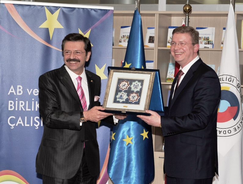 15th March, 2010 / TOBB President M. Rifat Hisarcıklıoğlu and EU Commissioner for Enlargement and European Neighbourhood Policy Stefan Füle convened in TOBB Twin Towers and then they visited Ankara EU Info Center for stating a Joint Press Briefing. Hisarcıklıoğlu underlined certain issues and problem areas related to visas, transport quotas and free trade agreements. He also stated that he requests assistance from Mr. Füle for the solution of those problems.