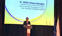 Birlik Başkanı M. Rifat HİSARCIKLIOĞLU, 14 Ekim 2009 tarihinde Brüksel’de gerçekleşen EUROCHAMBRES Genel Kurulu’nda, 2010-2011 yılları için EUROCHAMBRES Başkan Yardımcısı seçilmiştir. 17 Kasım 2013 tarihinde İstanbul’da düzenlenen EUROCHAMBRES Genel Kurulu’nda yapılan seçimlerde 83 oyun tamamını alarak tekrar Başkan Yardımcılığı’na seçilen Hisarcıklıoğlu, 16 Ekim 2015 tarihinde Lüksemburg’da gerçekleştirilen Genel Kurul’da oybirliğiyle Başkan Vekilliği’ne seçilmiştir. EUROCHAMBRES tarihinde ilk kez alınan bu kararla, AB üyesi olmayan bir ülkeyi AB ülkeleriyle eşit konuma getiren büyük ülkeler başkan vekilliği koltuğu ülkemize verilmiştir. Hisarcıklıoğlu, 27 Ekim 2017 tarihli EUROCHAMBRES Genel Kurulu’nda alınan kararla, bu görevine 2018-2019 yılları EUROCHAMBRES Başkanlık Divanı’nda da devam edecektir. Hisarcıklıoğlu bu kapsamda, AB üyesi olmayan ülkelerden sorumlu Başkan Yardımcılığı’nı üstlenmiştir. (Hisarcıklıoğlu’nun EUROCHAMBRES Başkan Yardıcmılığına seçiliş öyküsü)