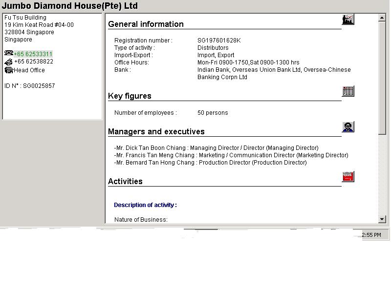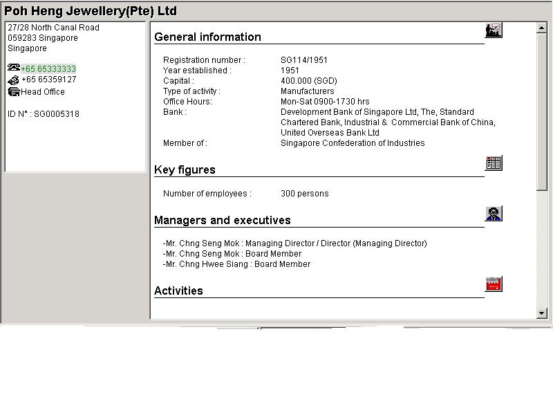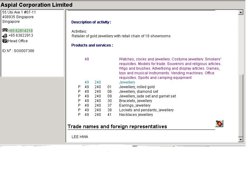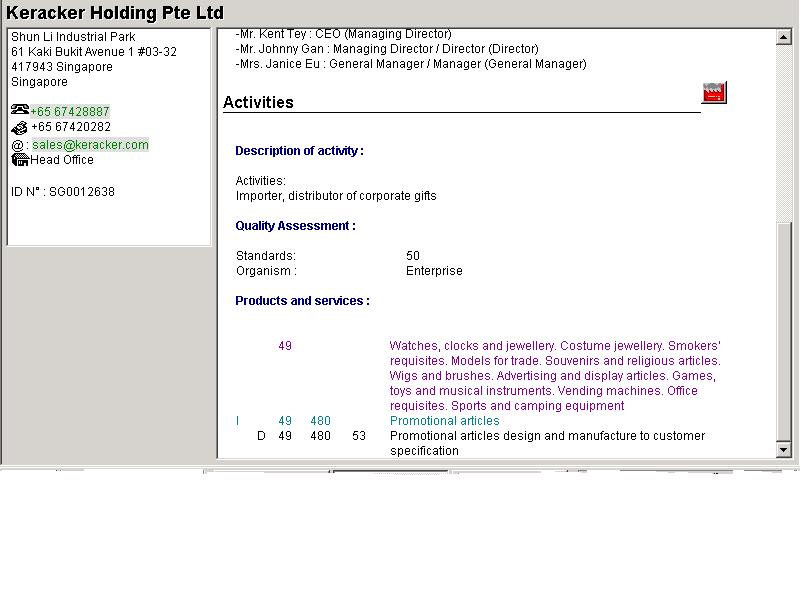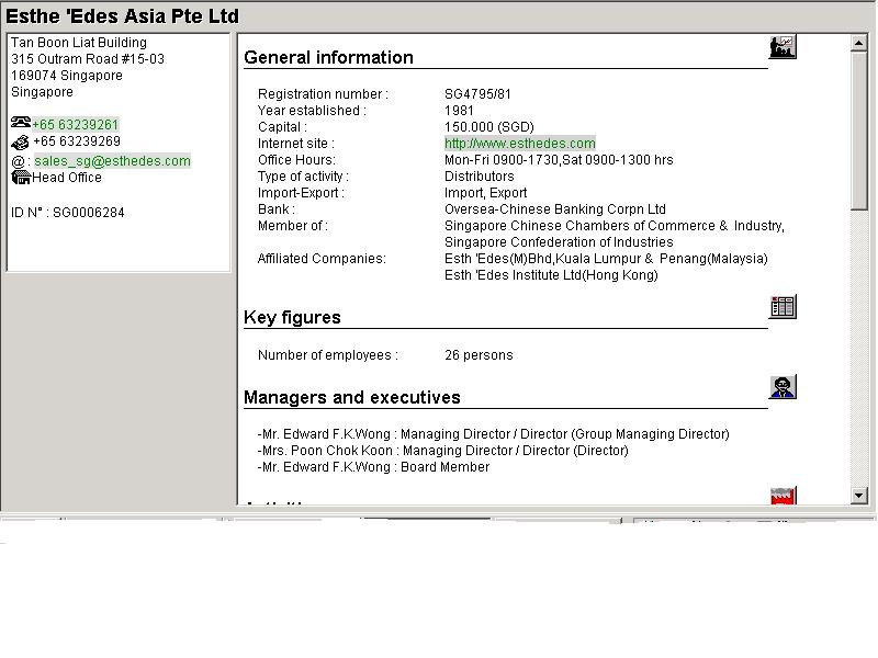 Bu web sayfasi yardimiyla, Singapur, Malezya, Hong-Kong, Tayland, Tayvan, Endonezya, Bruney ve Filipinler de mevcut olan firma bilgilerine ulasmak mümkündür.